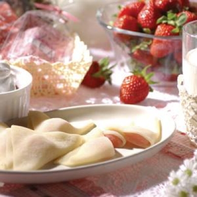 伝統の「京菓子・生八ツ橋」のふわふわやわらかな生地に、練乳たっぷり練り込み、いちごの風味いっぱいのいちごあんを包みました。いちごの甘酸っぱさと味わい深いミルクの風味が見事にコラボし、お口の中に「いちごミルク」の世界が広がります。